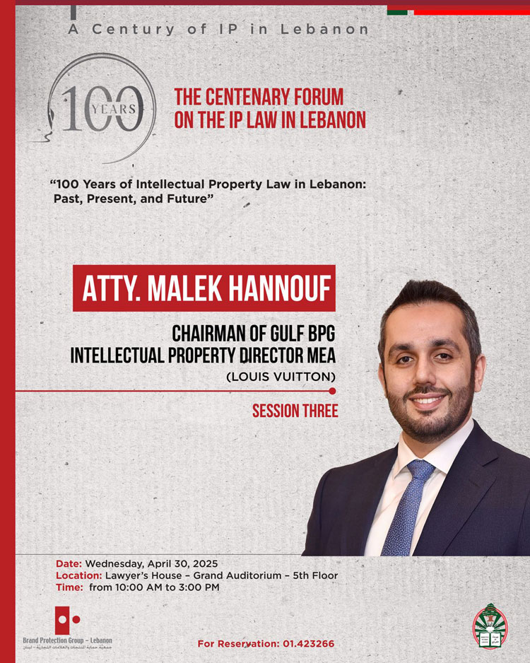 Gulf BPG, represented by Chairman Malek Hannouf, participated in “The Centenary Forum on the IP Law in Lebanon” held in Beirut.