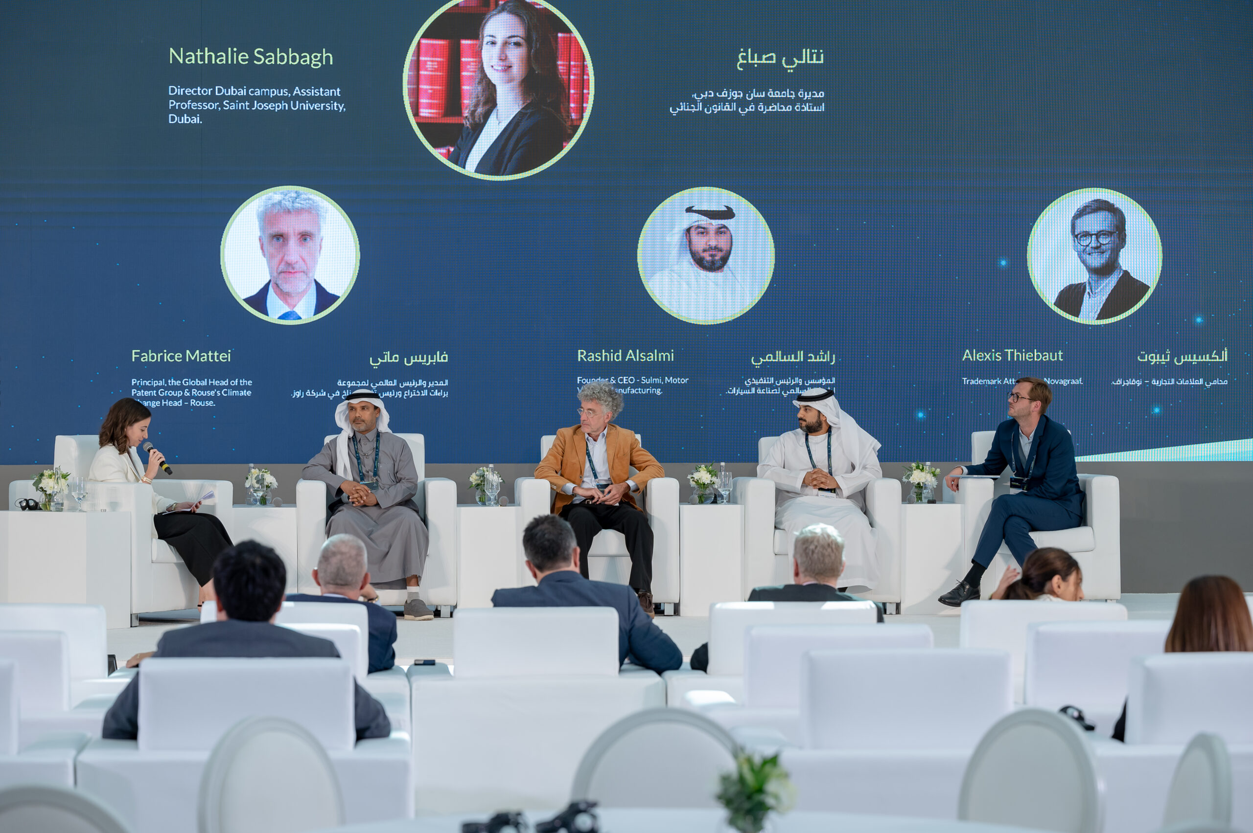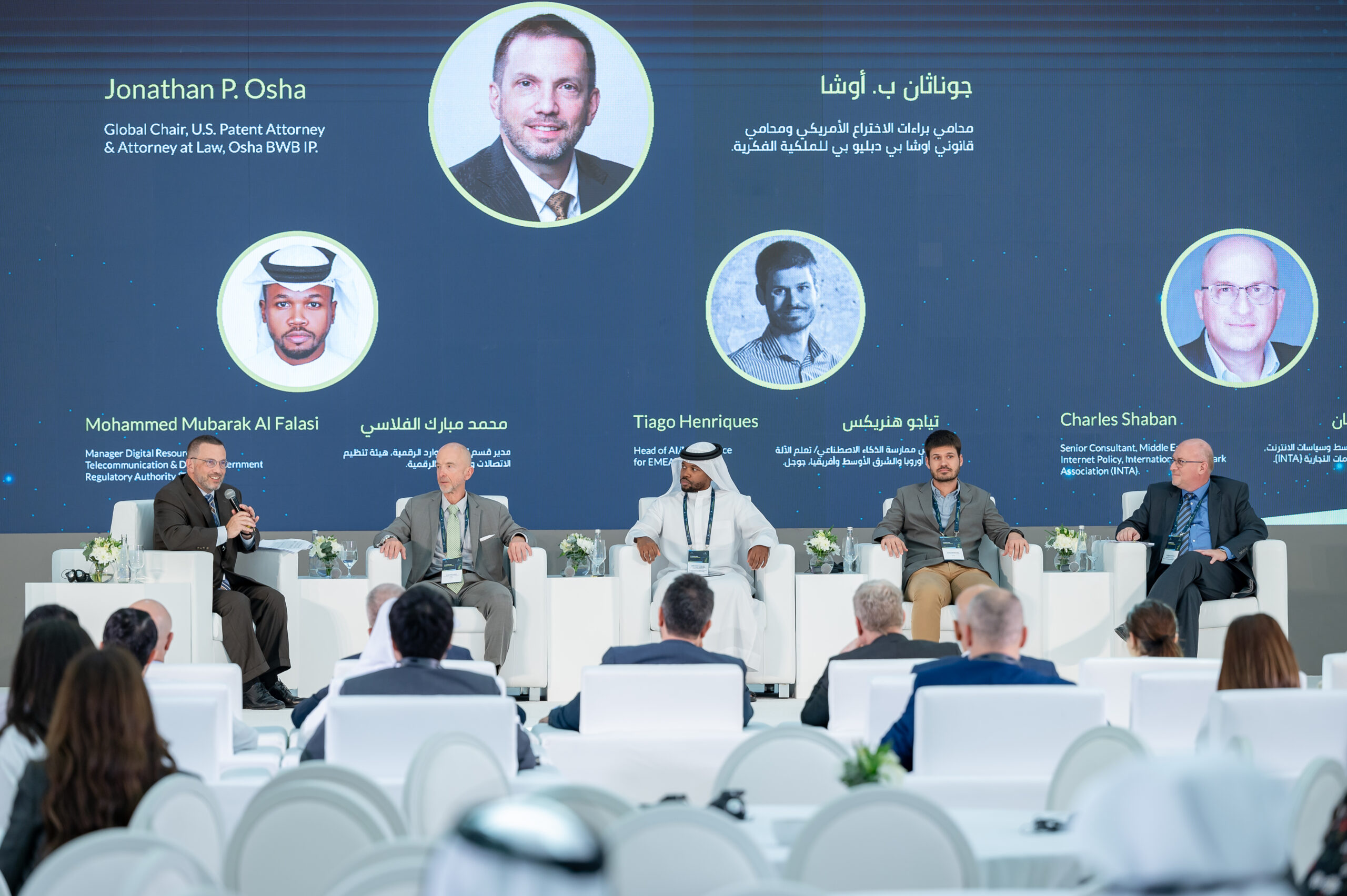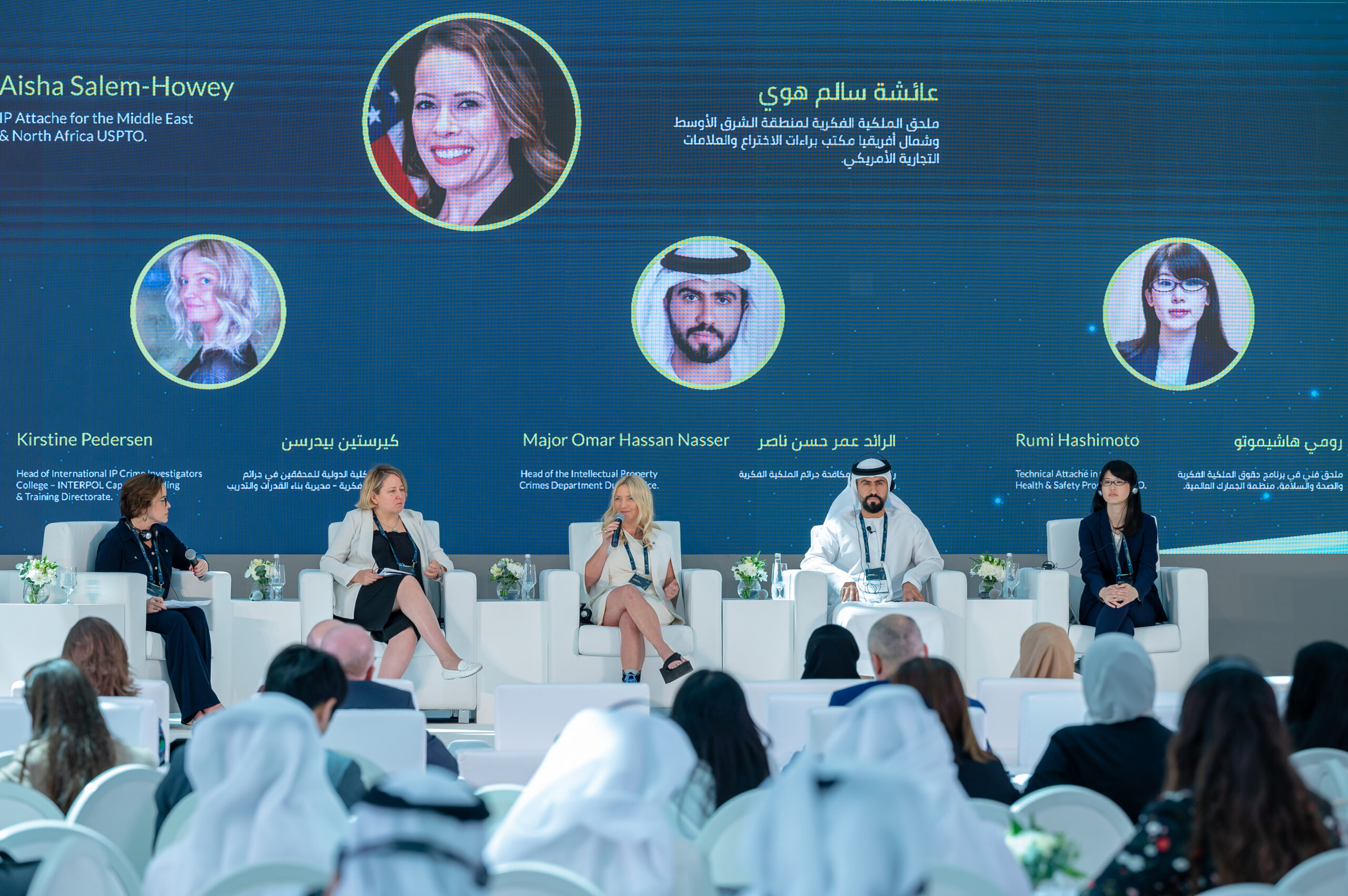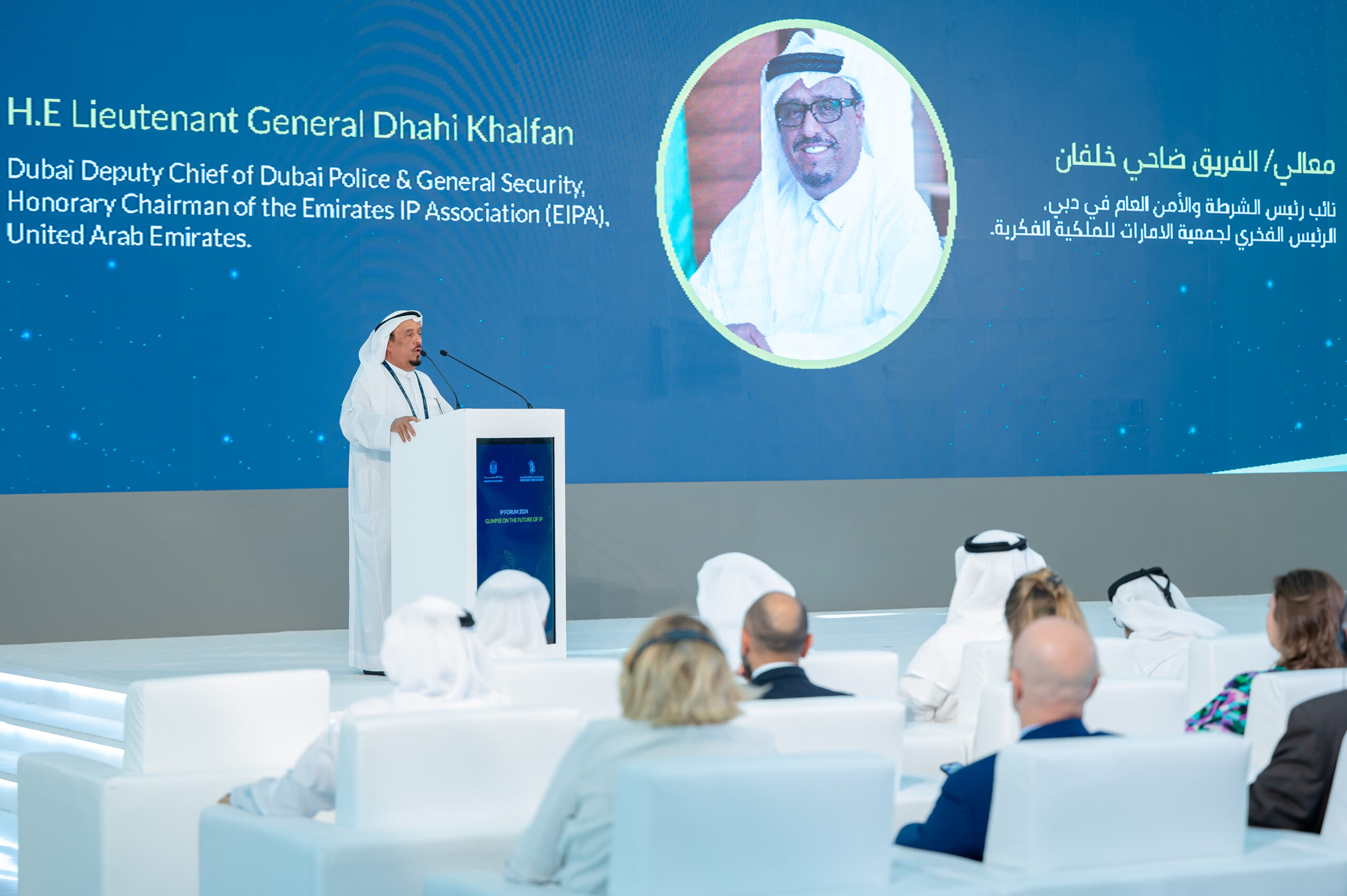 Opening speeches by H.E. Lieutenant General Dhahi Khalfan, H.E. Abdulla Bin Touq Al Marri, H.E. Khalfan Juma Belhoul, and Malek Hannouf, Chairman of Gulf BPG, emphasized the importance of innovation and the crucial role of intellectual property in fostering it. They highlighted the need for collaboration to create a brighter future for IP.